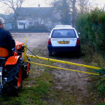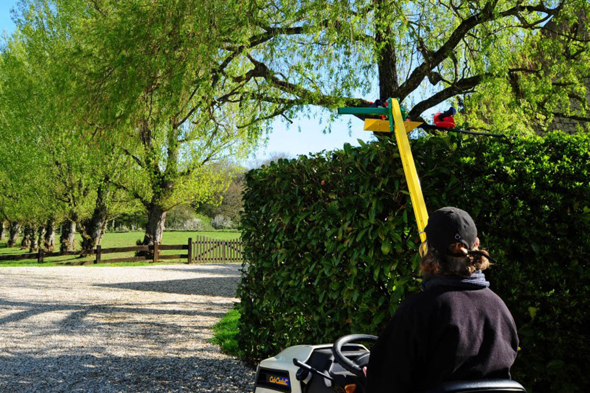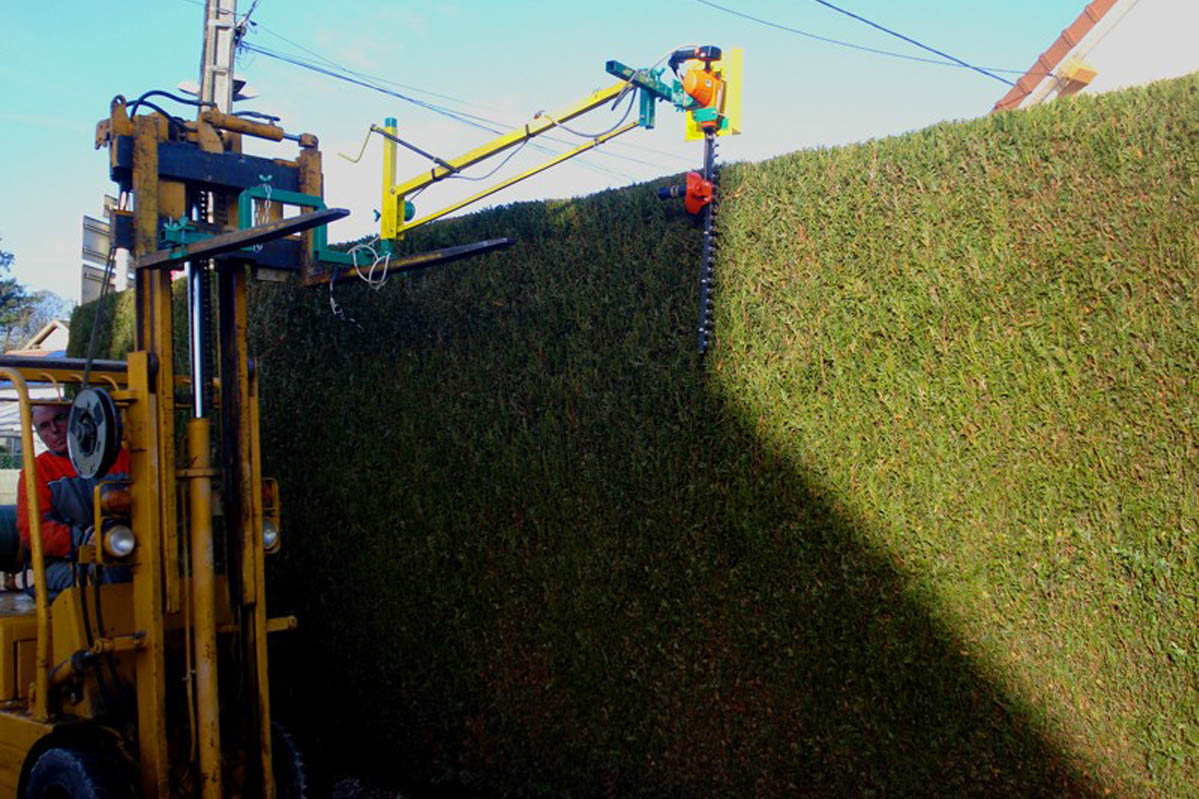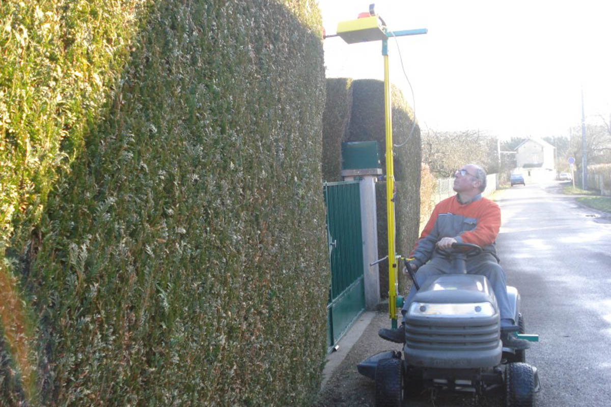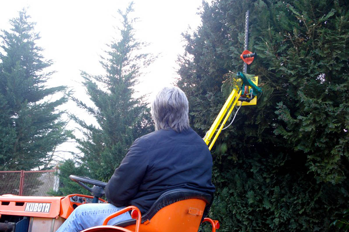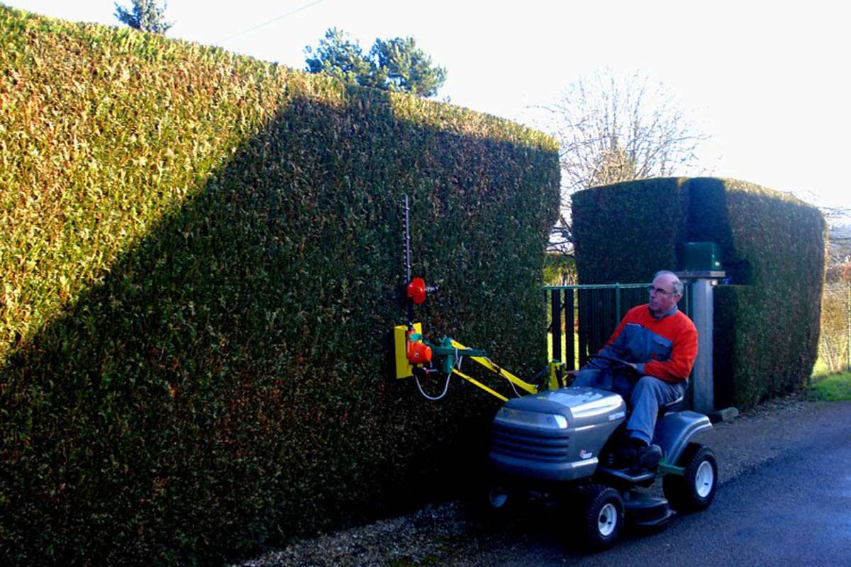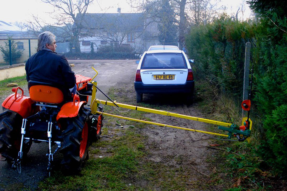 Micro-tracteur avec taille haie sur bras- porte-outils